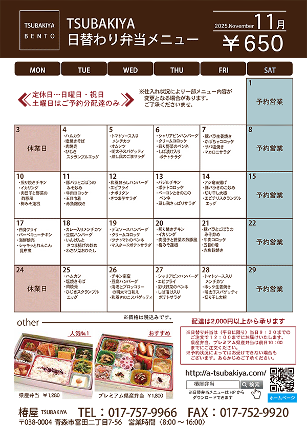 青森市の弁当・オードブル宅配「椿屋」(青森配達)