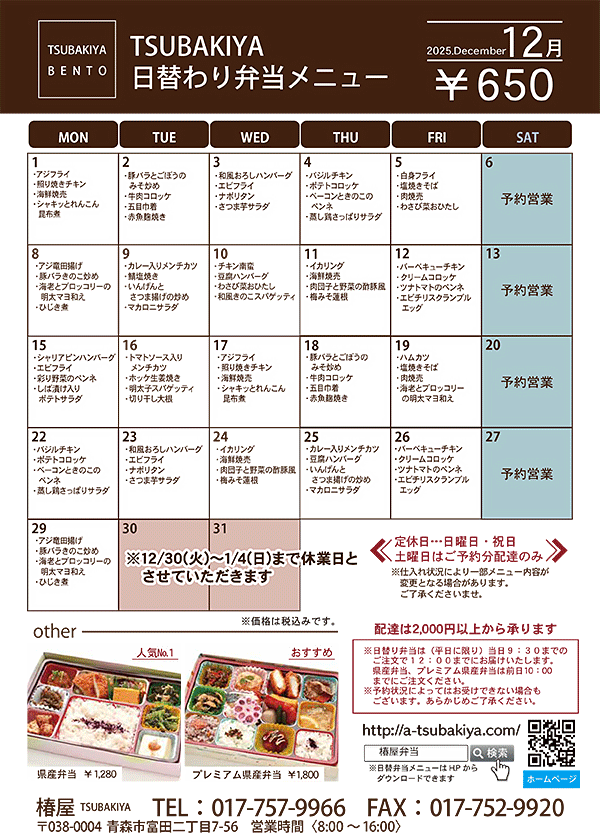 青森市の弁当・オードブル宅配「椿屋」(青森配達)