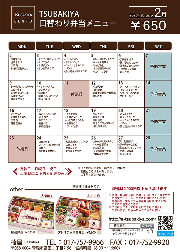 青森市の弁当・オードブル宅配「椿屋」(青森配達)